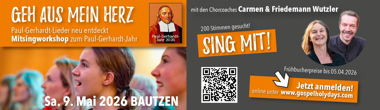Paul-Gerhardt-Lieder neu entdeckt – Herzliche Einladung zum Mitsingen am 9. Mai 2026 beim überregionalen Workshop „Geh aus mein Herz“ unter Leitung von Carmen & Friedemann Wutzler